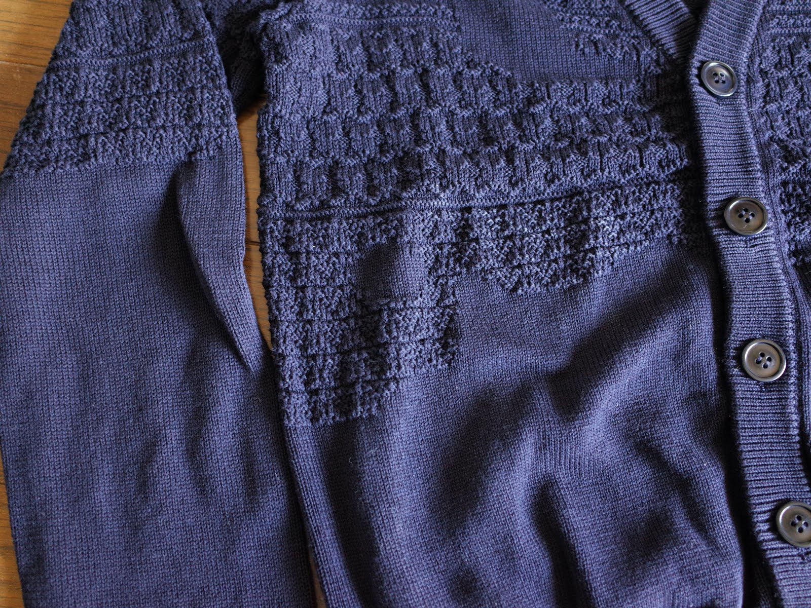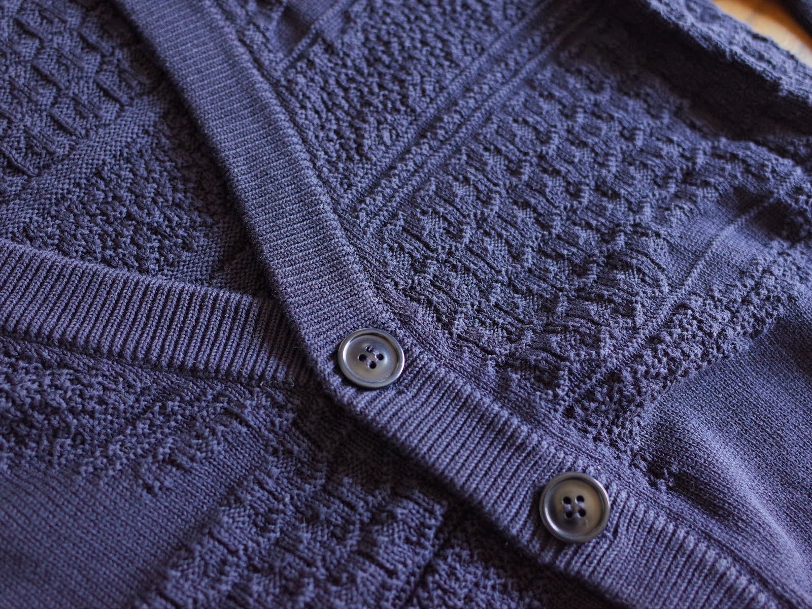 おお、このカーディガン、さりげなく3種類違うパターンで編まれてますね。たぶん、ものすごく手間がかかってます。