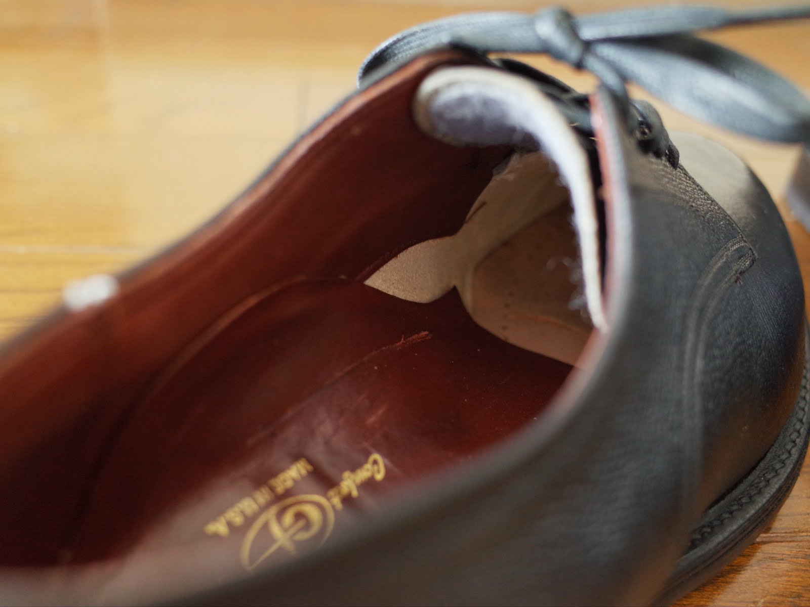 土踏まず部分のアーチサポートは、ライニングと中敷きの間にもう一枚革を挟み込んでサイドまで捲り上げるという面白い構造ですよね。デザイン的に美しくはないんですが、履いてしまえば見えませんし、朴訥とした感じが私は好きです。