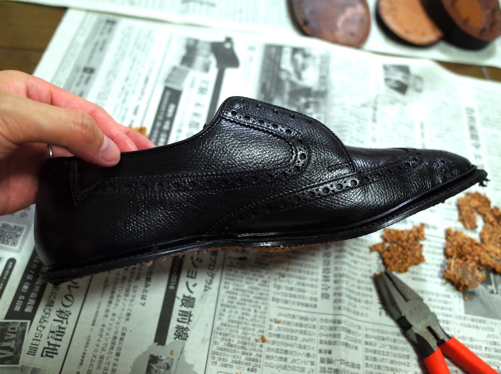 実際に作業をしてみるとオールソールの大変さが良くわかります。