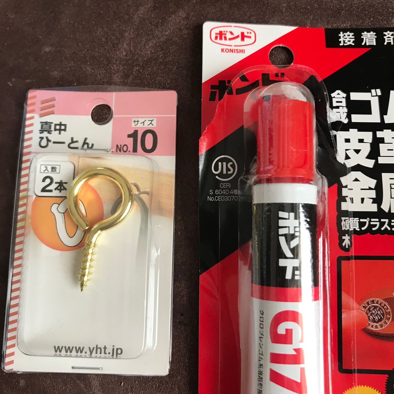 元のネジをペンチで回して引っこ抜き、その穴にボンドを流し込み、それからフックをねじ込みました。