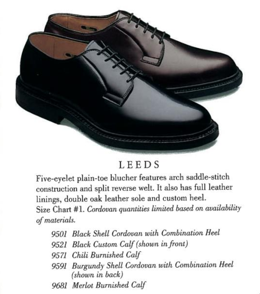 Leeds自体は1964年から登場しており、発売から50年以上経っているロングセラーモデル。途中ラストの変更や、コードバンやグレインレザーなどで展開されています。