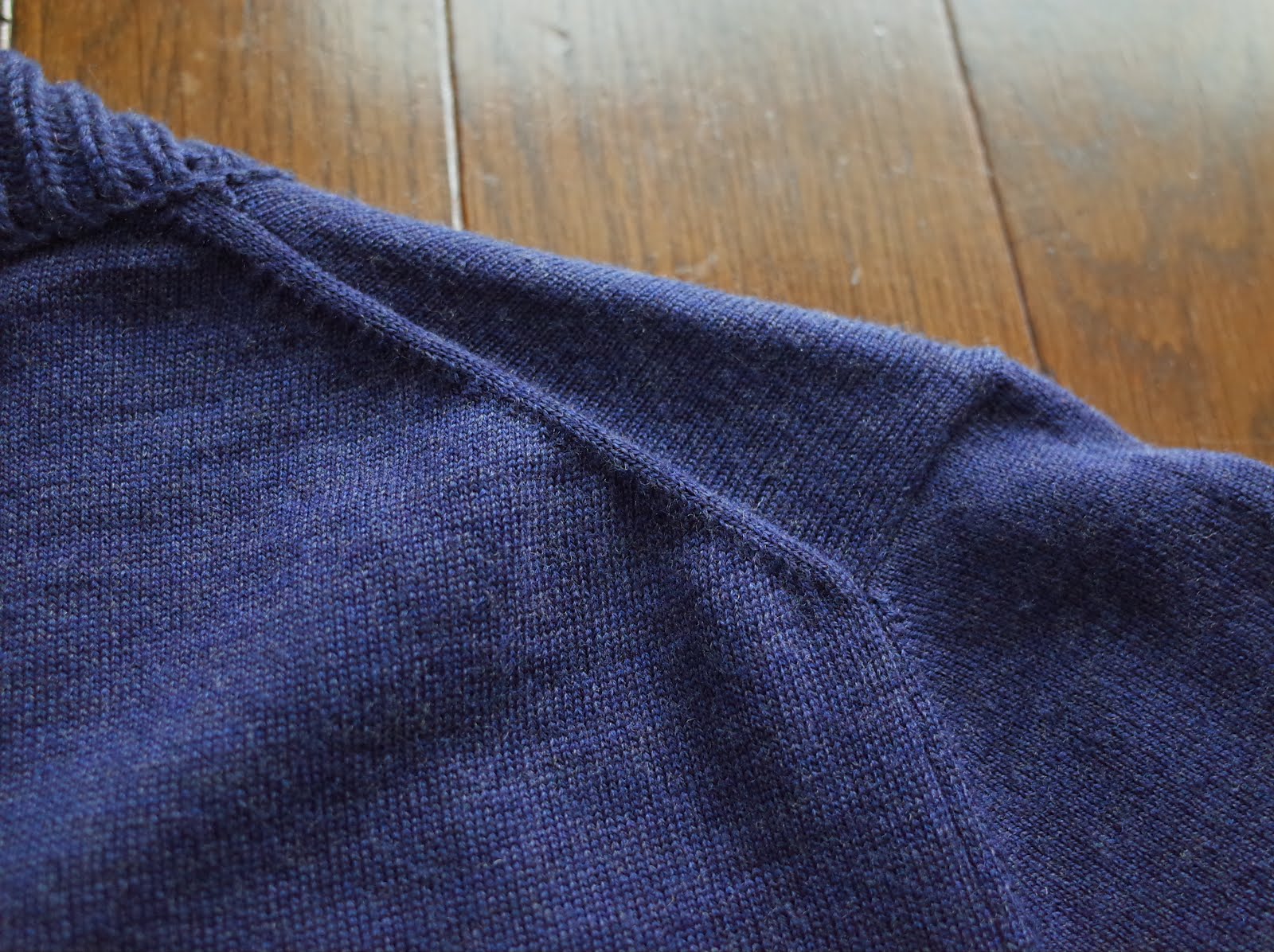 後ろ身頃の肩の構造は、やや手の込んだ部分。唯一の特徴かもしれません。シームが表に出ないのように縫われています。