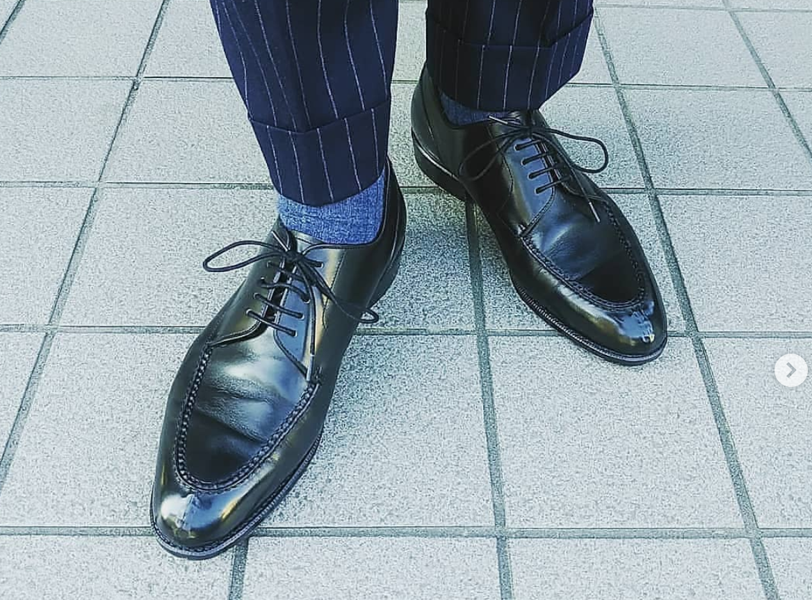 シワは靴の宿命ですが、Uチップはシワが一番目立つデザインではないかなあと思っています。Uモカにシワが絡んでUのラインが歪んでくるんですね。味ではありますが。