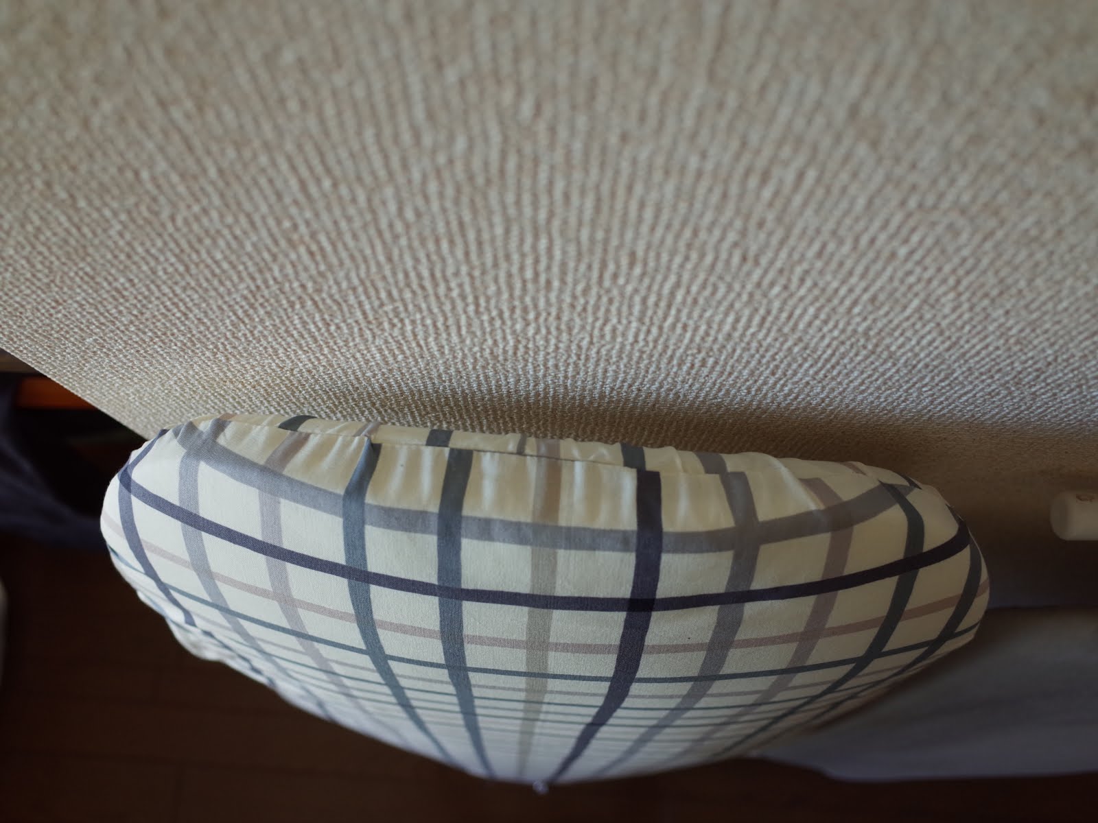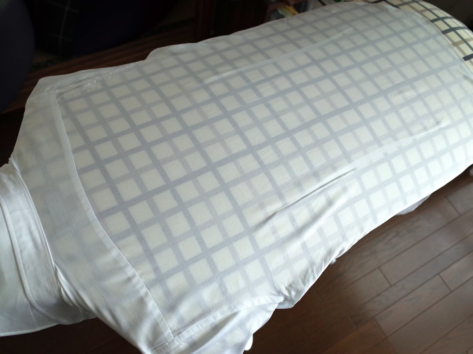 逆光できれいな写真が取れていませんが、妻曰くなんだか前よりもふんわりと仕上がっている、とのこと。曲面に仕上がっているアイロン台なので、立体的に仕上がりやすいのだと想像しています。