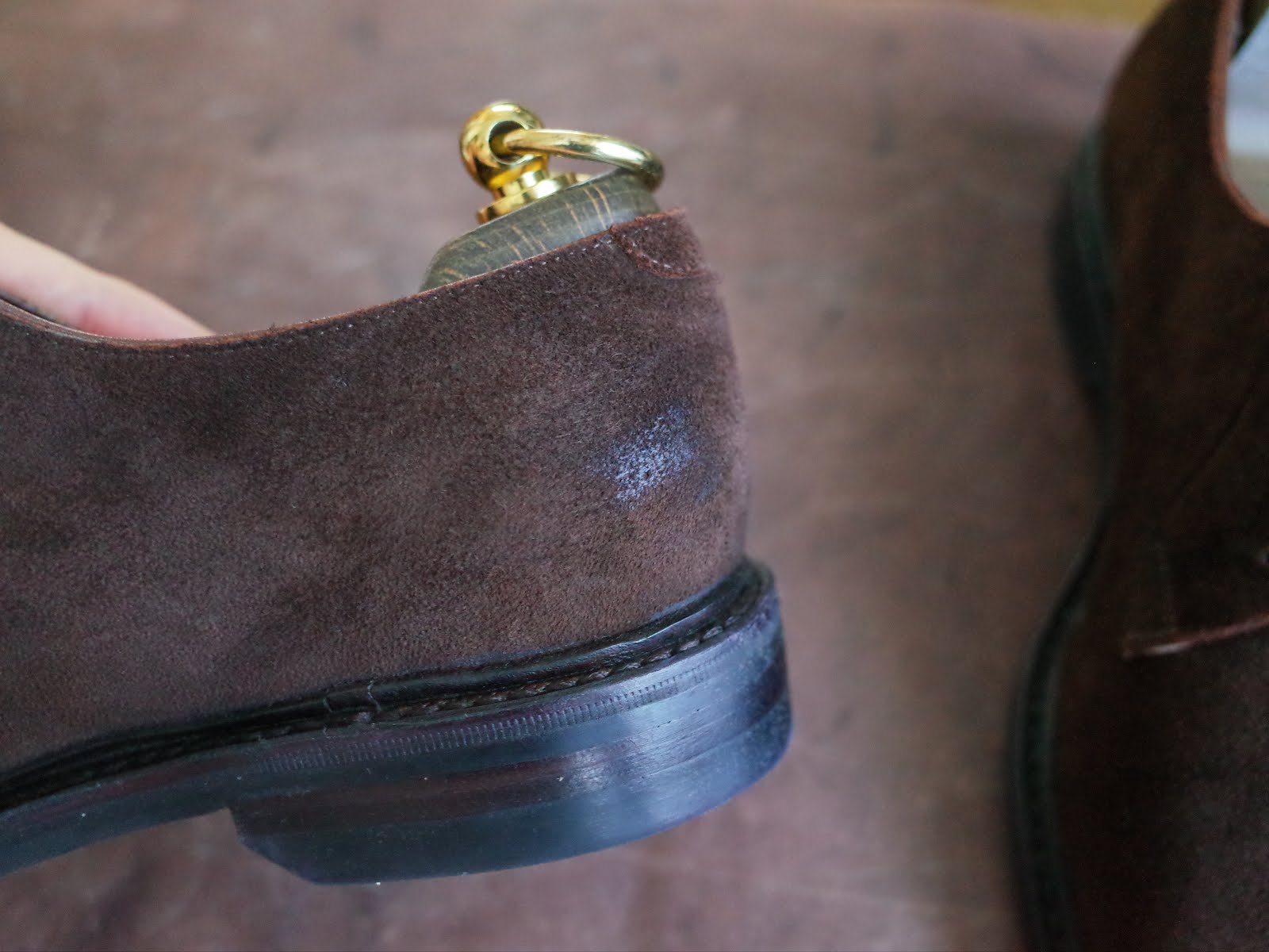 スムースレザーとケアの勝手が違うスエードですが、個人的に一番違うと感じるのは汚れ落としの部分。クレープブラシなどで部分汚れを取る手段はあるものの、全体をやるのは大変。かといって、スエードシャンプーは毎回やるのはしんどい。