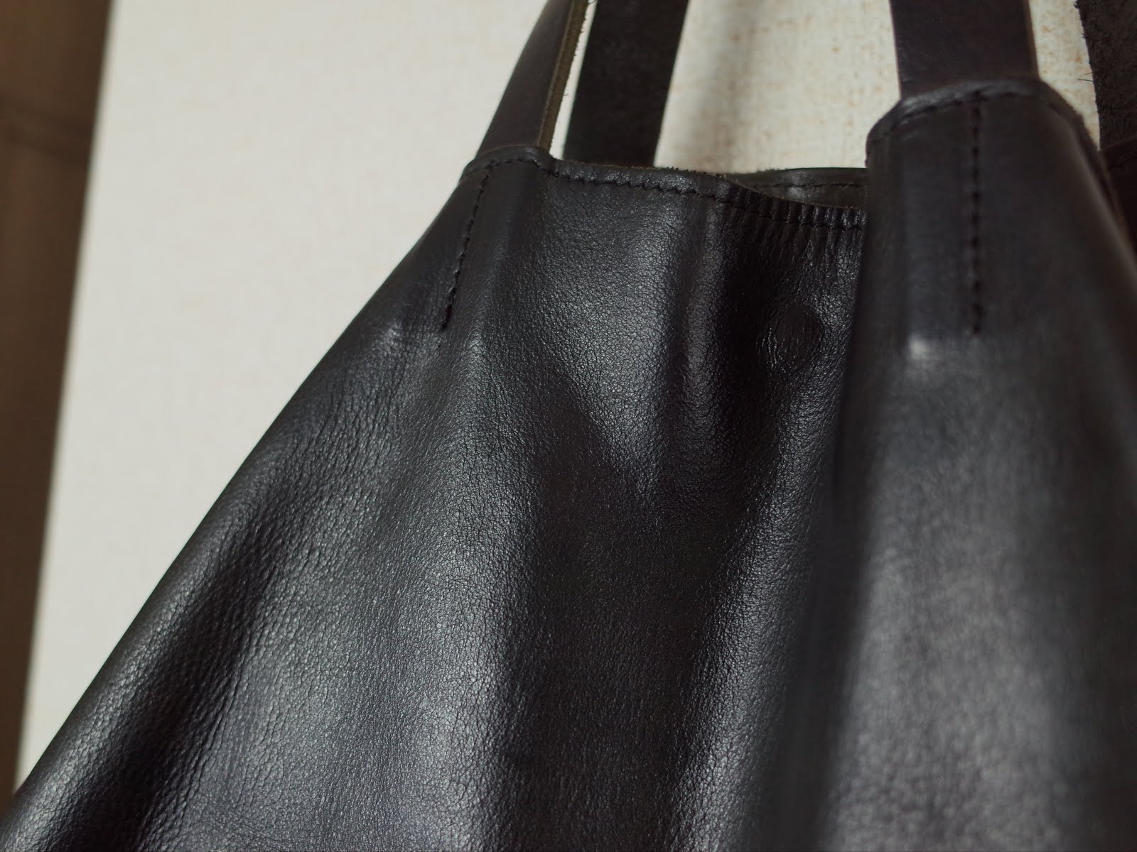 革が柔らかいことを示すように、角が内側に入り込んで表情を変えてくれます。入れるものの量に応じてカバンが形を合わせてくれるよう。