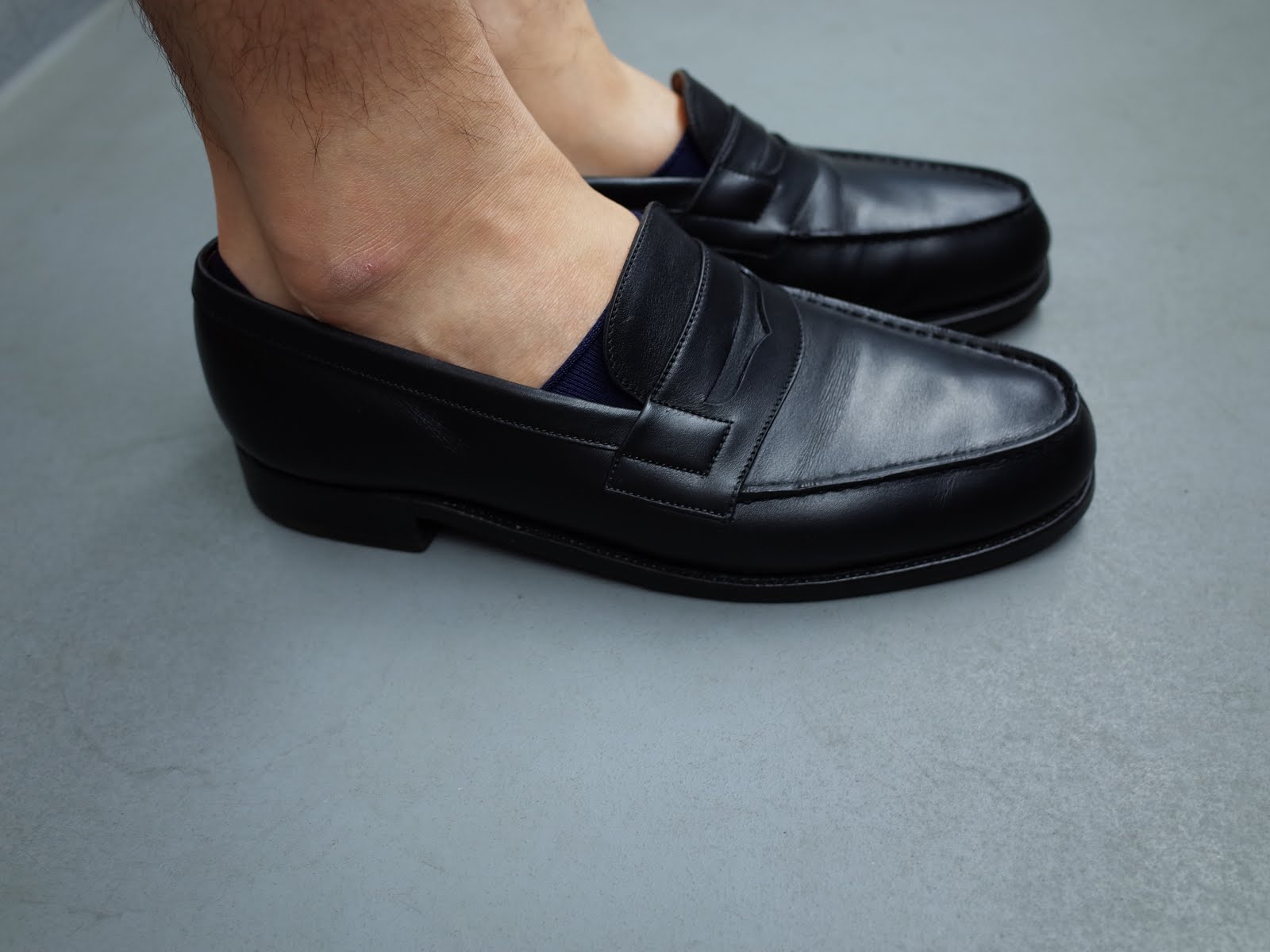 そして、ローファーに合わせてみると、ソックスが目立つことなく程よい位置に収まってくれています。アンクルソックスだと見えすぎ、つま先を覆うだけのものだと甲の部分が直接肌とローファーが触れてしまい蒸れやすい、それらを解消してくれる絶妙なバランス。
