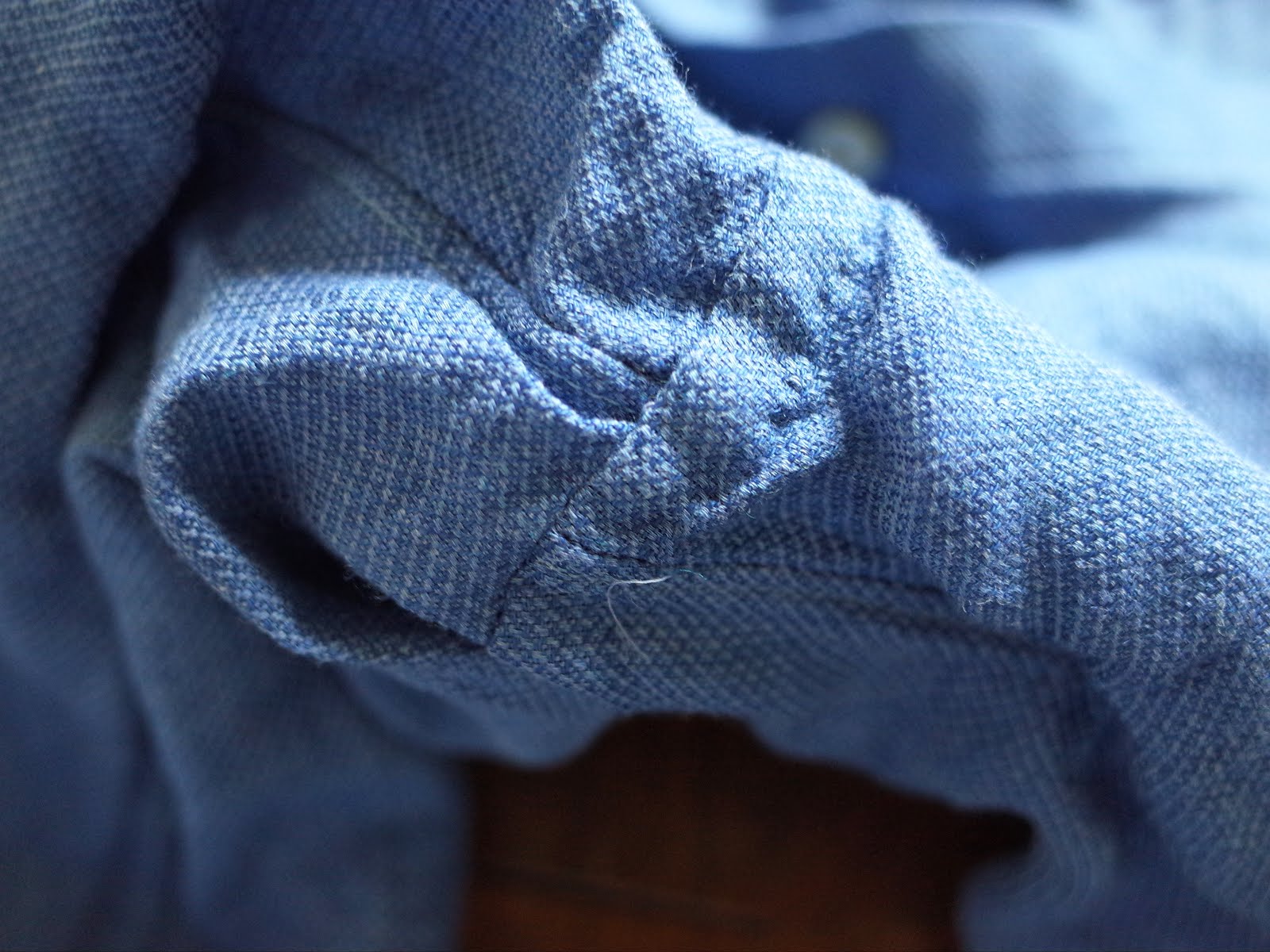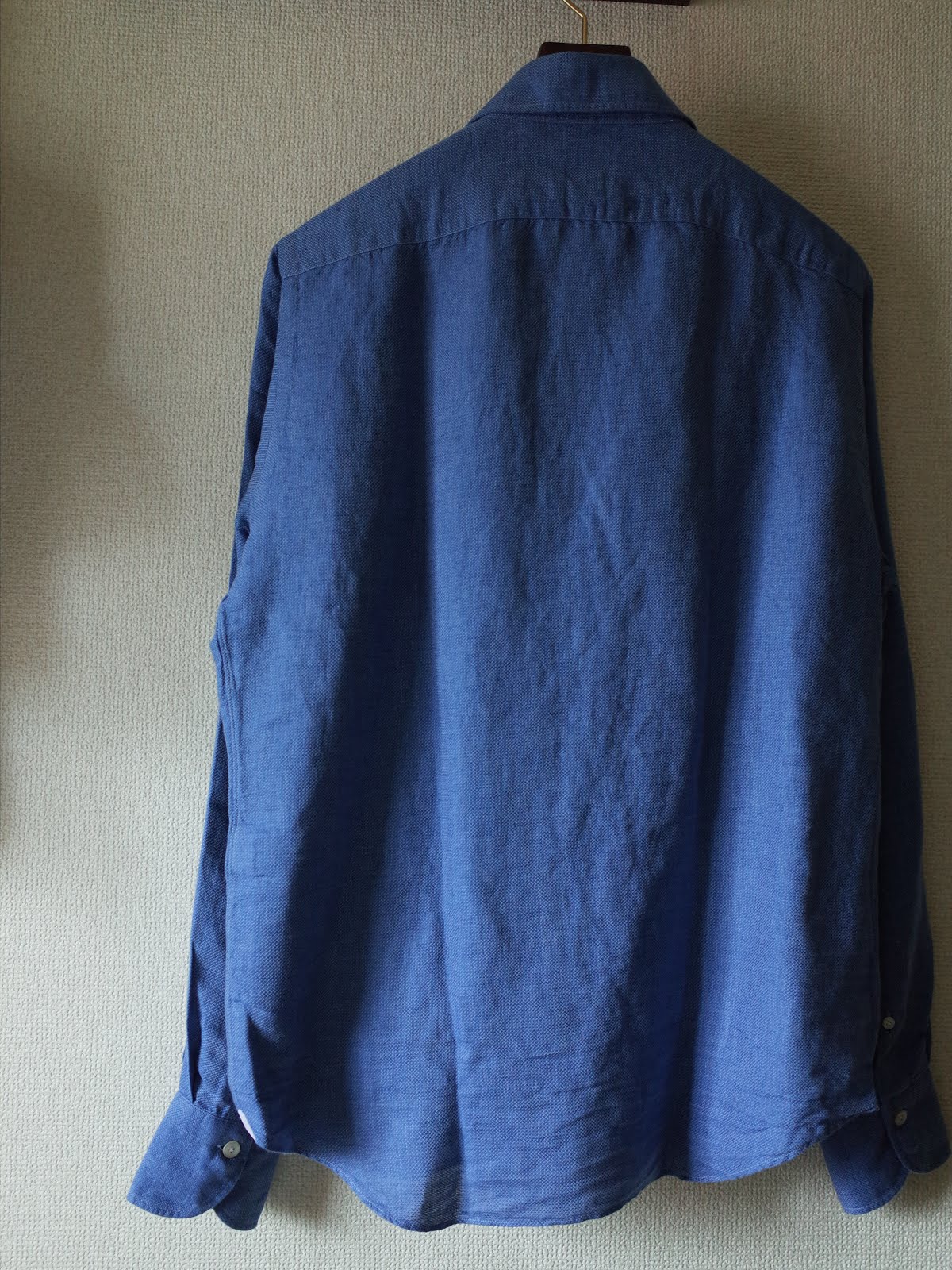これから着込んでいくと、インディゴの色落ちも楽しめそうで今後がとても楽しみなシャツです。先日オーダーしたヤマナカシャツはオンで、こちらはオフで、ブルーのシャツを着る機会が増えそうです。