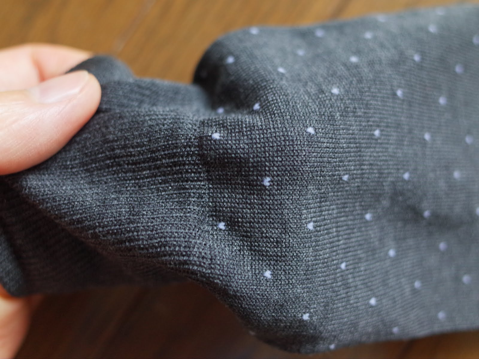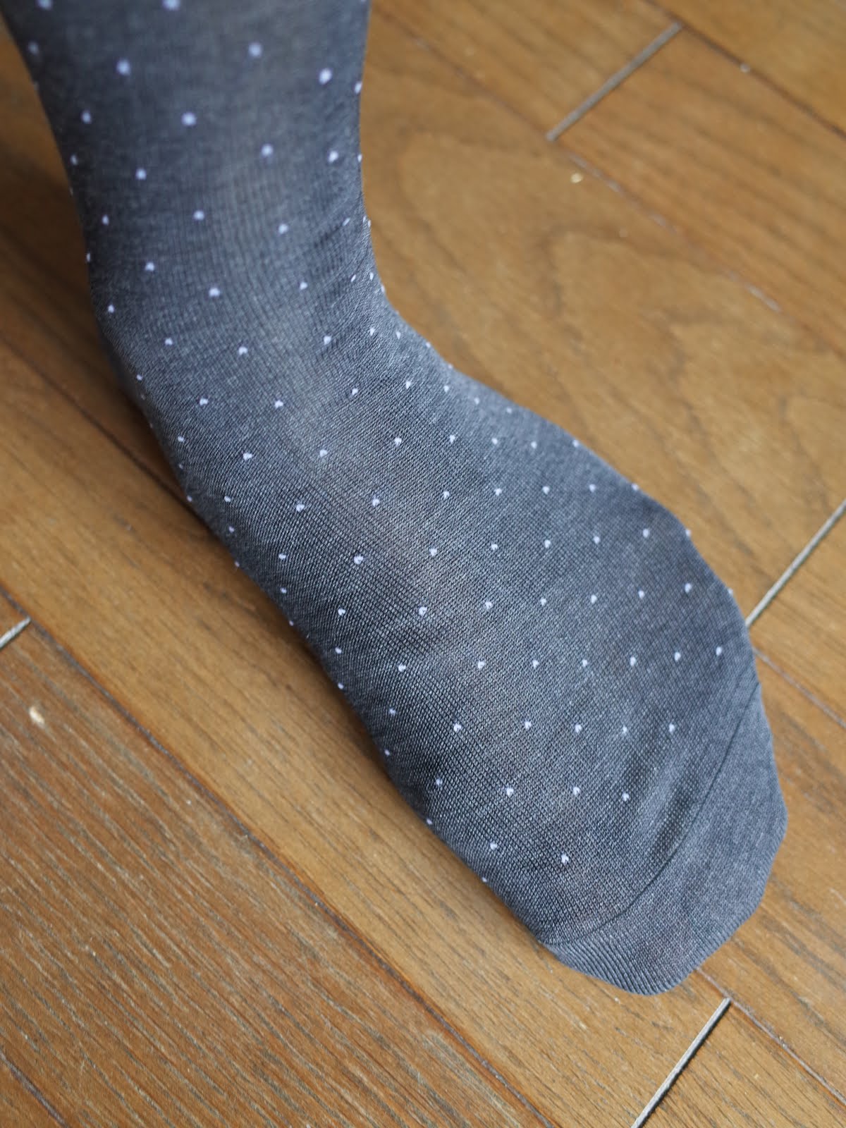 Made in England、ロングホーズは無地が多いのですが、さりげないドットが入っていたことも購入の決め手。ドットも丸というかハートのような^^
