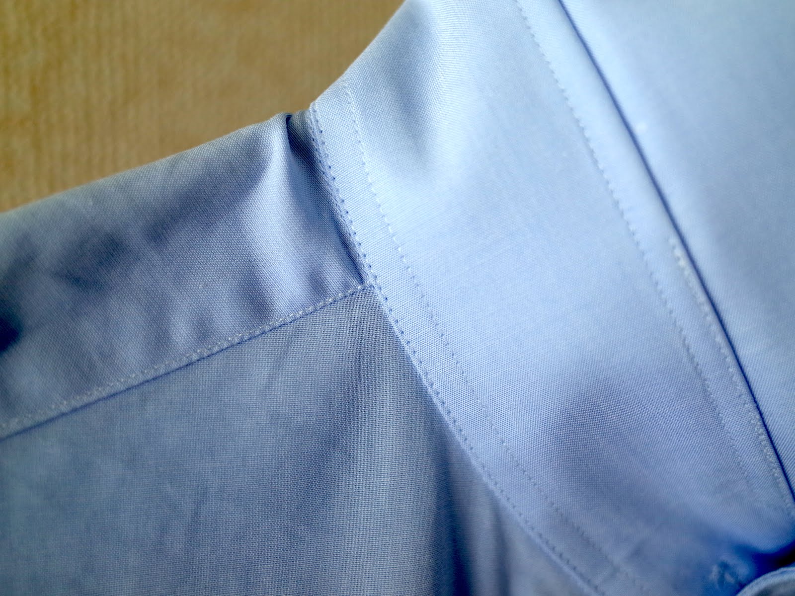 gohkitiさんにおすすめしていただいた、前たてに芯を入れたので、ペチャっとならず立体感が出ています。ボタンを外してもしっかり立つので、ノータイで着用しても様になりそうです。