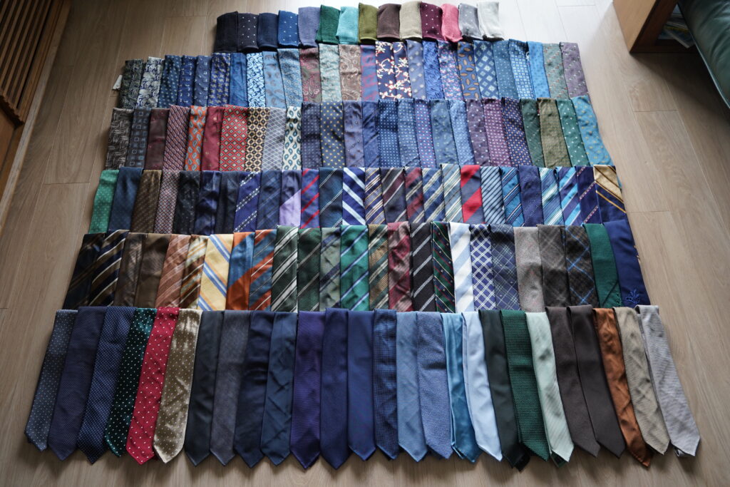 2025/6時点で所有する全てのネクタイを並べてみた結果がこちら。