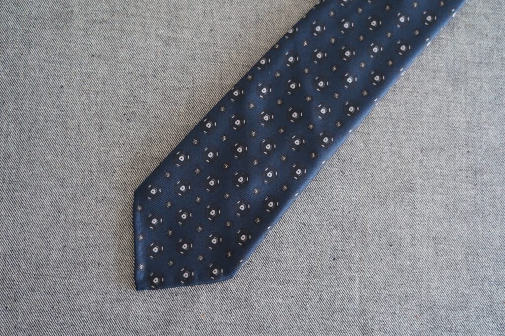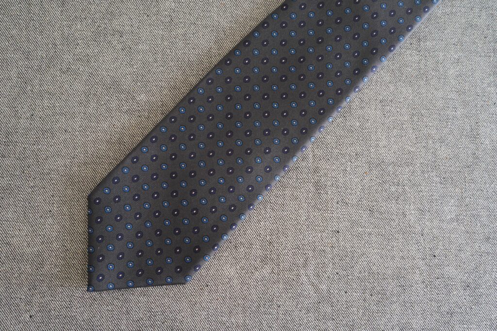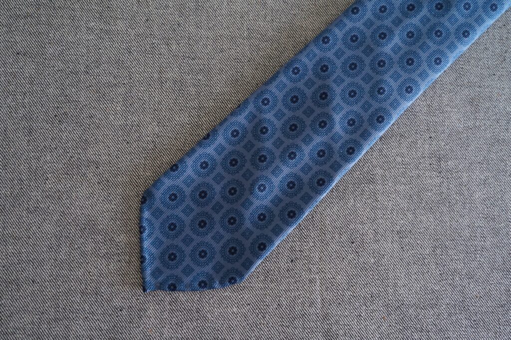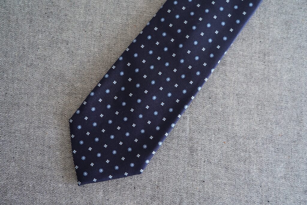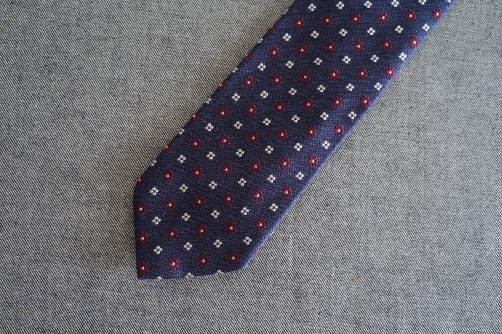 レジメンタルよりも小紋の方が好みになってきた今日この頃。こちらも何かしらの柄と合わせることもありますが、控えめな物に関してはソリッドのスーツと合わせることも。