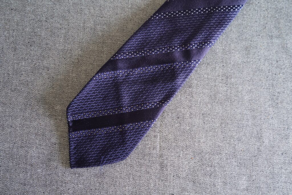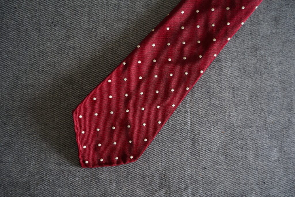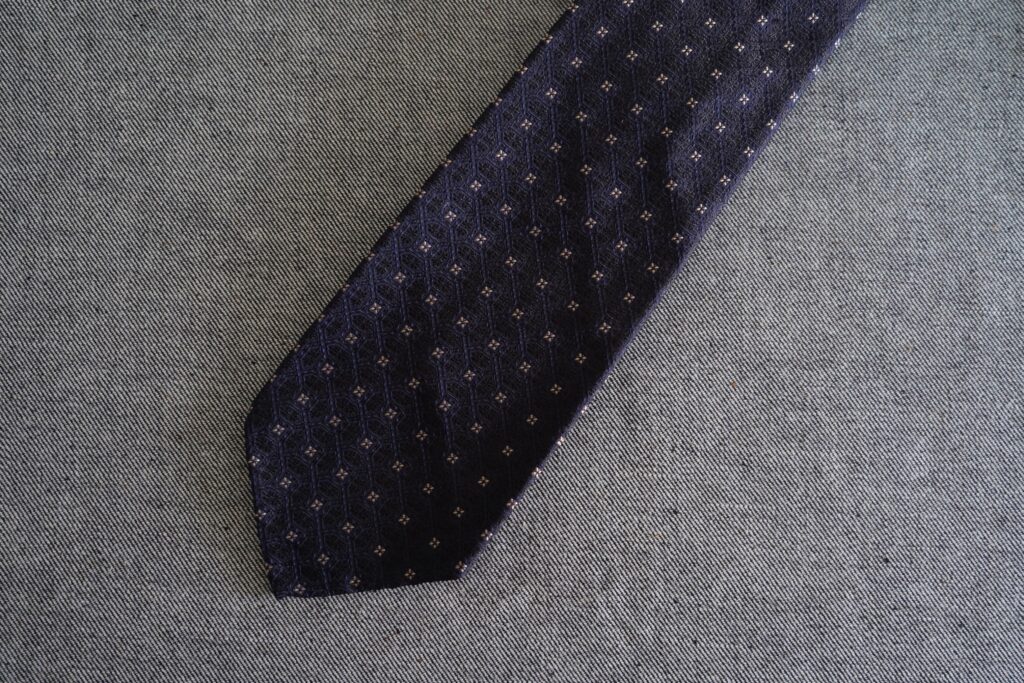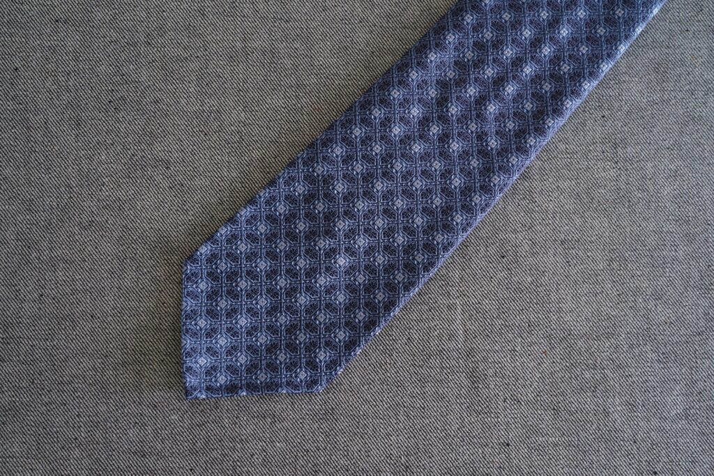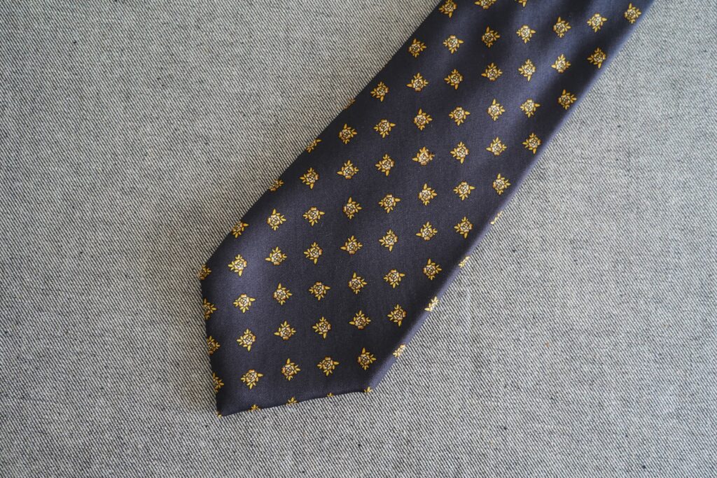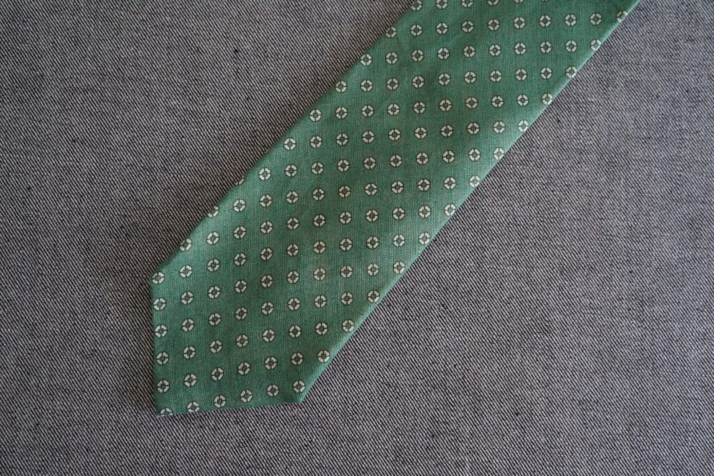 レジメンタルよりも小紋の方が好みになってきた今日この頃。こちらも何かしらの柄と合わせることもありますが、控えめな物に関してはソリッドのスーツと合わせることも。