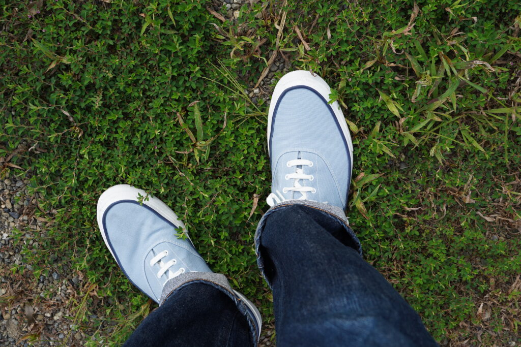 ANATOMICA(アナトミカ)WAKOUWA(ワクワ)、濃紺のジーパンにライトブルーのスニーカーが履きたい、と思って購入しました。ライトブルーのスニーカーって意外と見ないんですよね。
