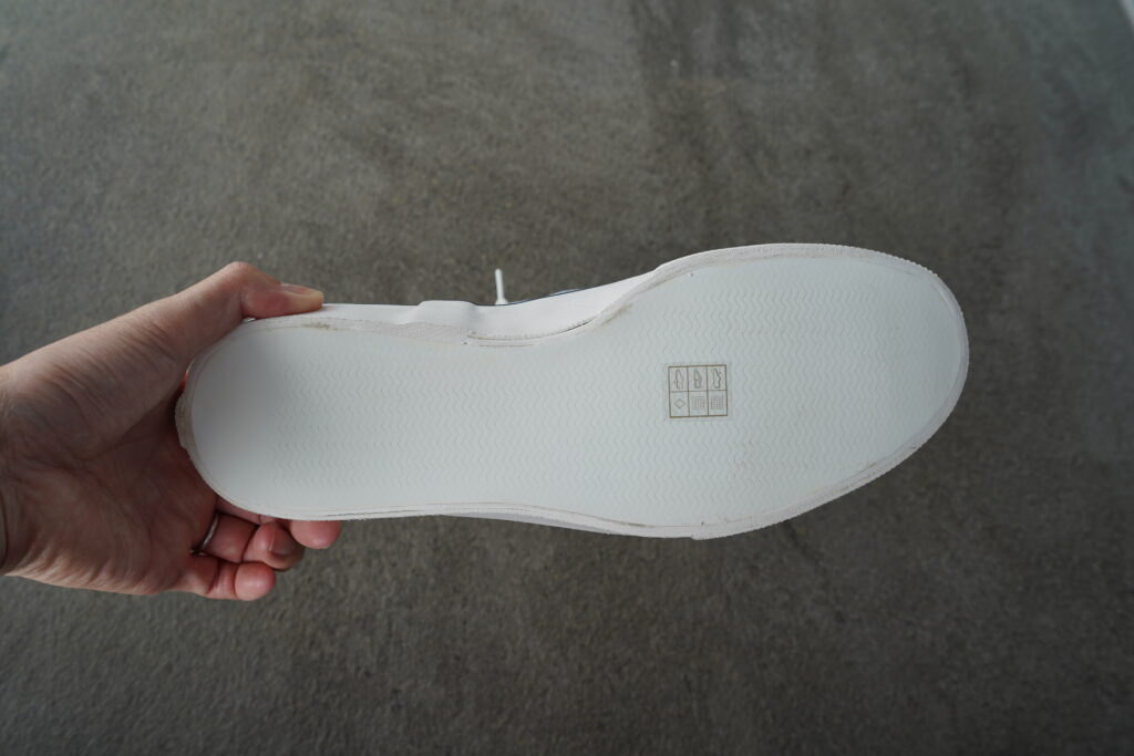ラストの特徴を示すかのようなインソールの記載。さらに後述しますがソールもかなりしっかりしたものが使われています。全体として、シンプルながらも安っぽさを感じるところがないスニーカーです。
