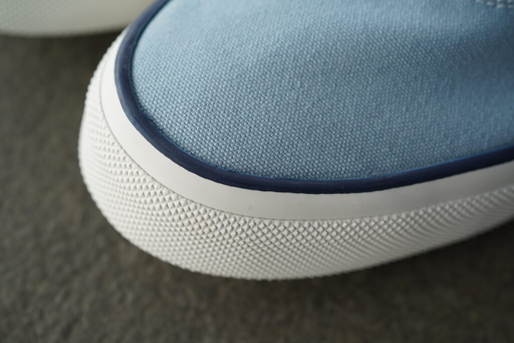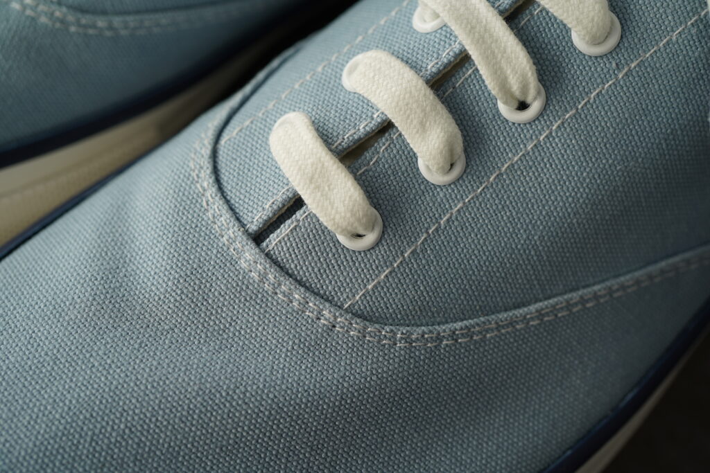 丸みを感じられる優しいラインに、ステッチもキャンバススニーカーに合うような形で入れられています。ハトメが白なのもまた良い。