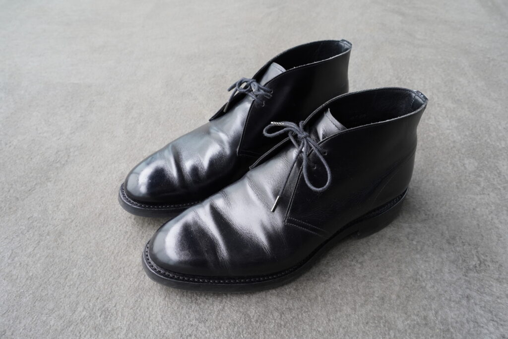 試しにモイストとディープブラックのケアをCheaneyのCrowfieldでした時のもの。この靴はダイナイトソールでかつブーツということもあって、悪天候の時にばかり出番がきます。つまりスレや色抜け、乾燥などなど、ビジネスで履くにはケアされているべき事象が起きやすい靴です。