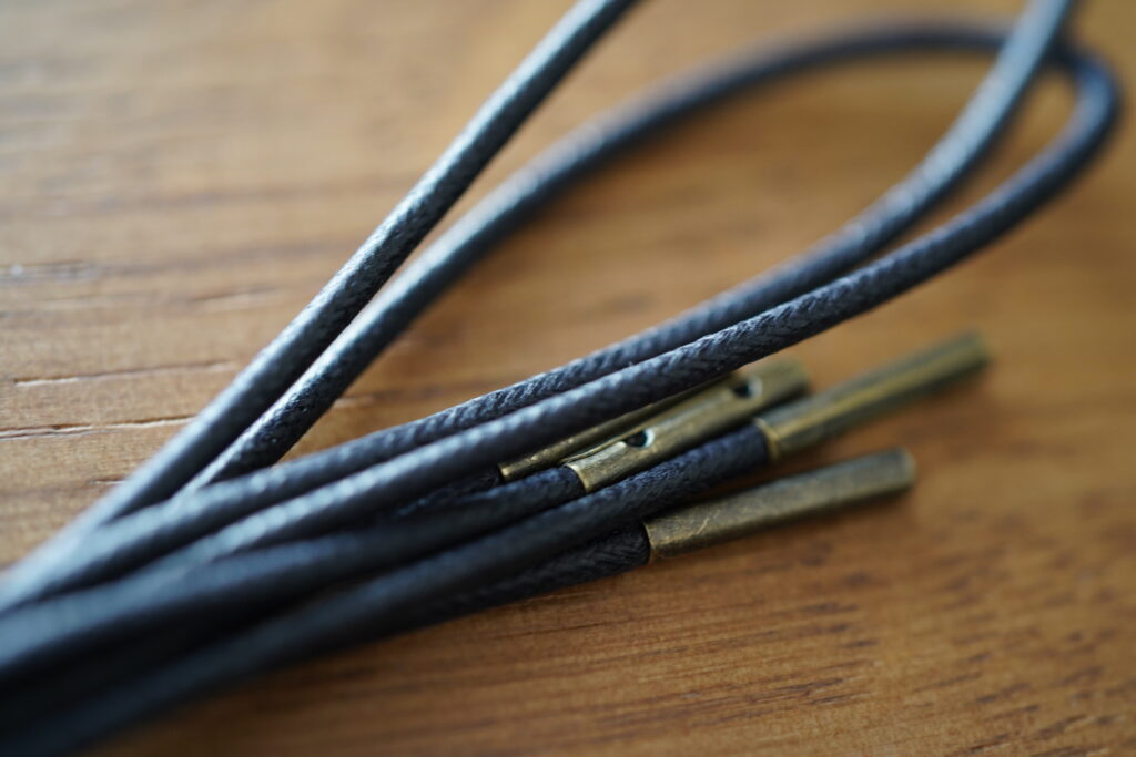 続いてこちらも革靴には欠かせない要素である靴紐。これも長さをオーダーでき、かつサノハタも選べてもちろん金ゼル付き。かつ、色味もめちゃくちゃ豊富なラインナップです。
