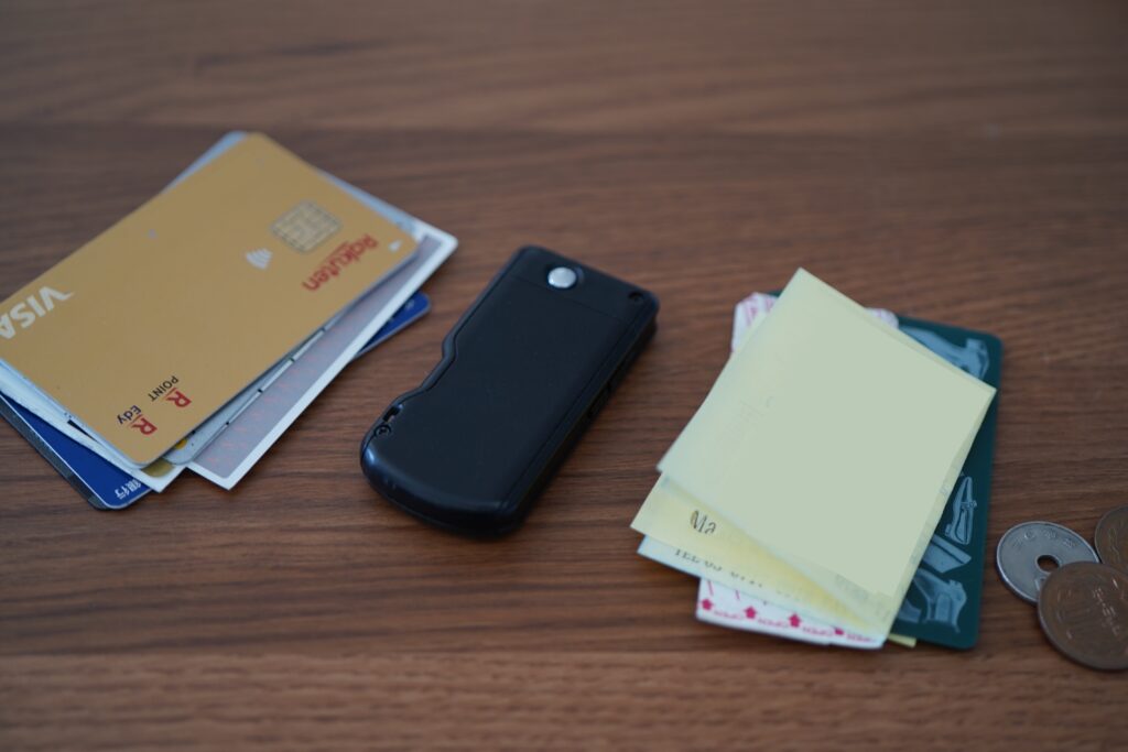 適当に突っ込まれていたカードや鍵、小銭、諸々の預かり証など…これを3箇所に明確に区分けして収納ができます。収納力は文句なし。カードは7-8枚、7mmくらいの厚みがある鍵、小銭やお札、全て楽に収納できまだ余裕があるくらい。かつごちゃごちゃにもならないので非常に便利です。