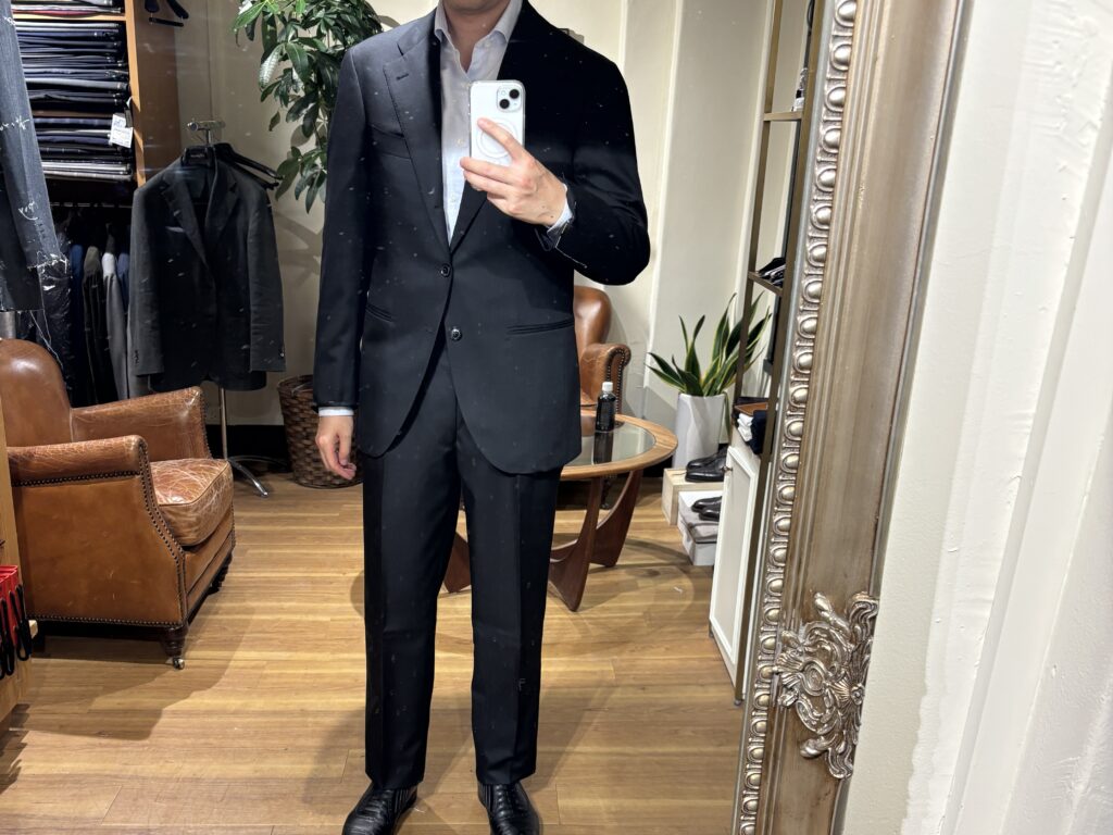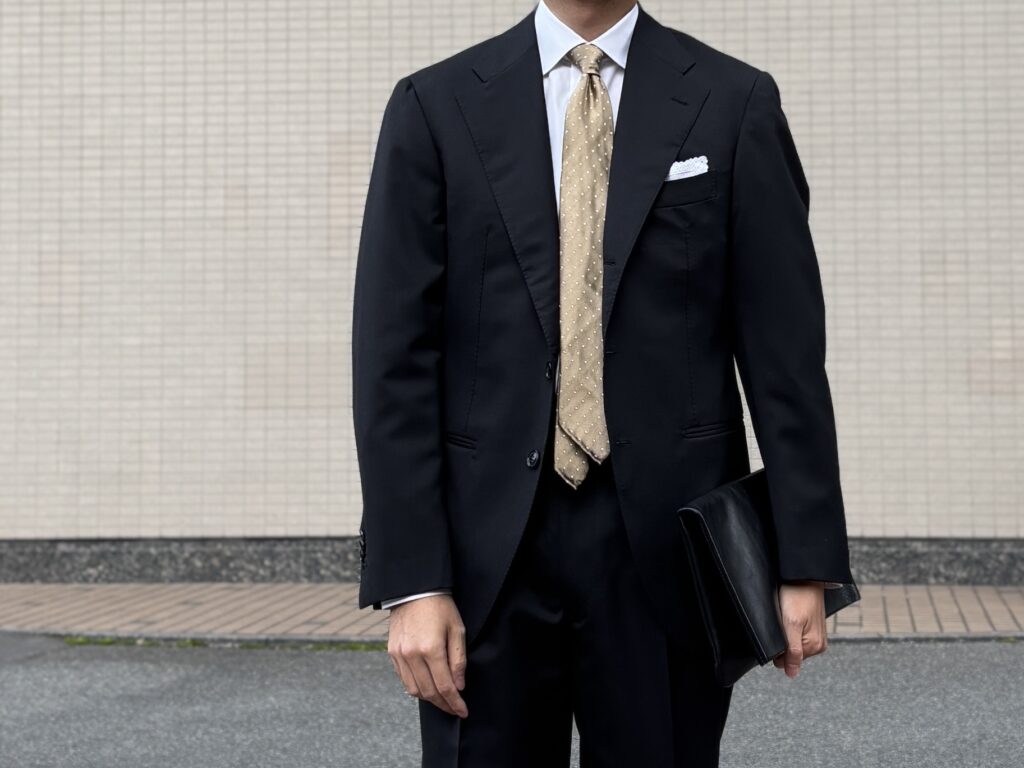 何がきっかけかわからないのですが、関西のSartoria Raffanielloで、RTWのブラックスーツが出ていると知って。一度アトリエに伺って着てみたいなと思っていたのですが、ようやくその機会を得て、そして購入に至りました。