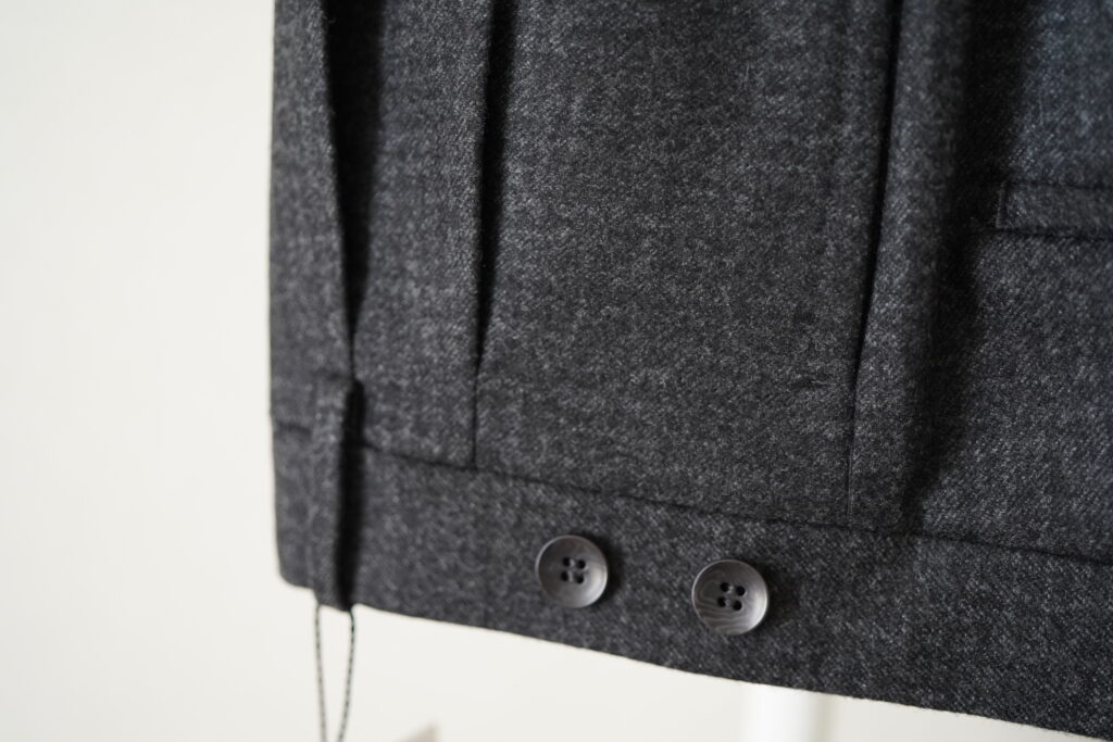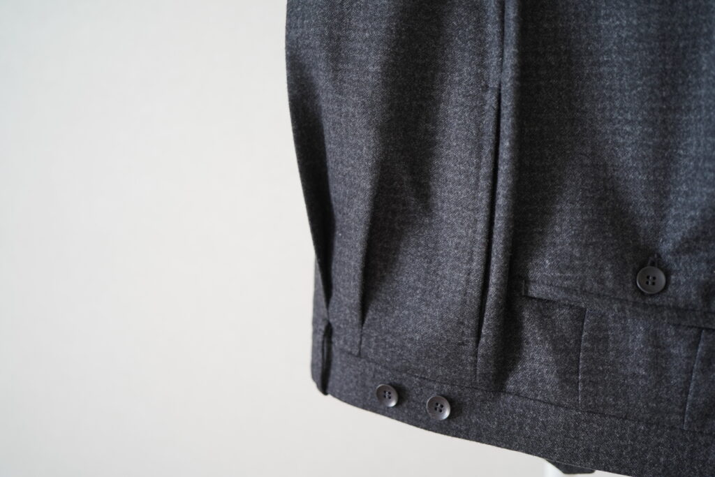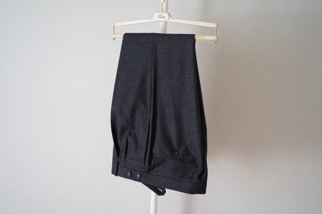 細かな寸法値などは過去のポストを参照いただければと思いますが、履いていて窮屈だと感じるところのない、身体的にも精神的にも余裕のあるシルエット。そのシルエットにウールカシミヤの柔らかい生地感が加われば…ということで大変気に入った組み合わせになりました。