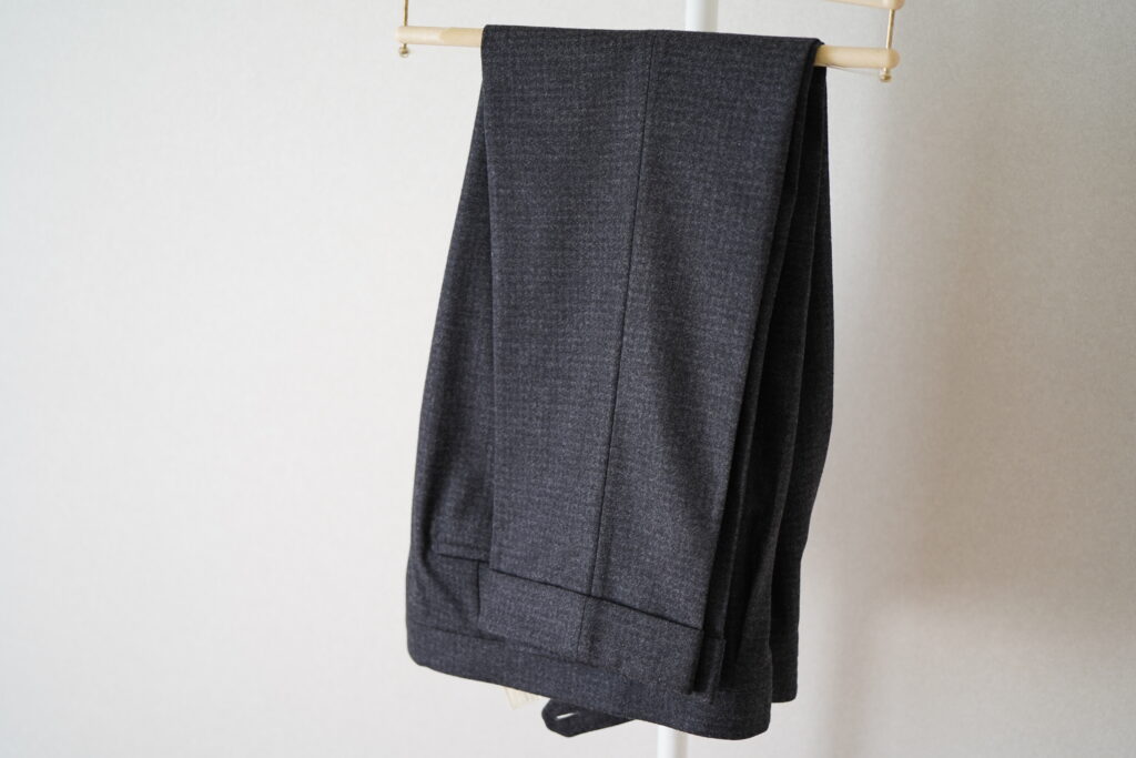 ウールカシミヤの滑らかな質感がまたたまりません。アクティブに動く日には全くもって向かない生地だなと思いますが、デスクワーク中心の日には積極的に履きたくなるパンツです。NOBEL FLANNEL、他の生地でも頼みたくなりますね…