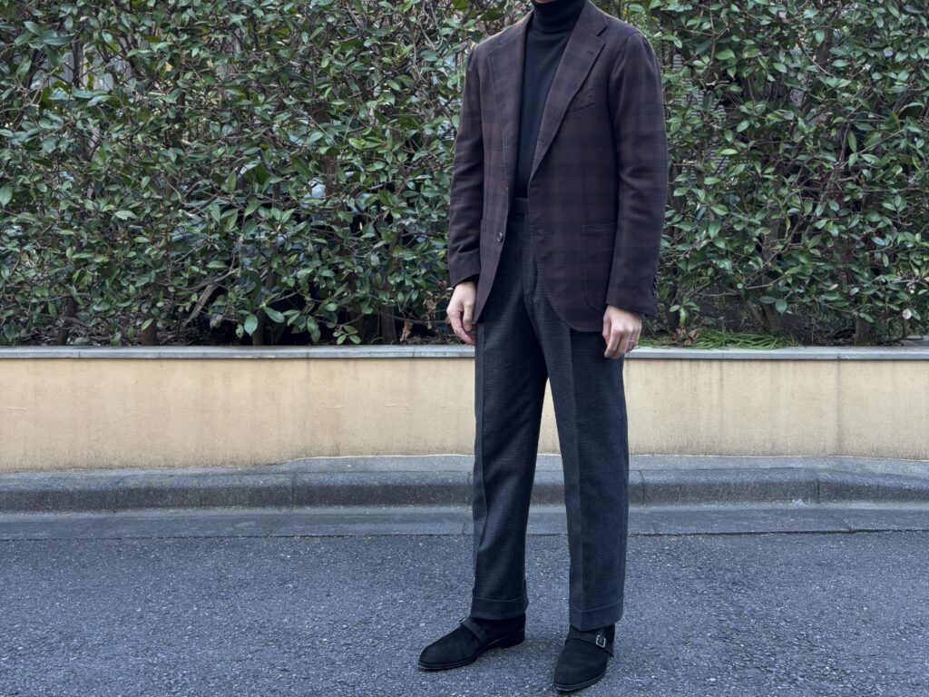 また、PADOVAは数値で見ると結構太いのかなと感じるのですが、着用するとスッと馴染んでクラシカルでありつつも現代の服にもよく馴染む、そんな型なのだろうと思います。当然ながらジャケットもクラシカルなものと合わせるのがベターでしょう。