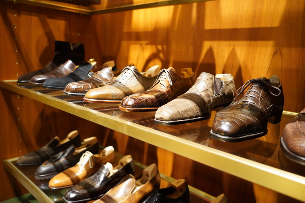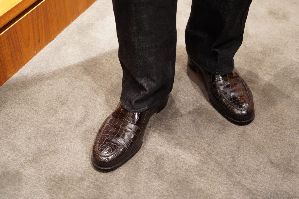 こちらはソブリンハウスの木原さん。SPIGOLAでオーダーされたクロコのローファーがあまりにもかっこよくて思わず撮らせてもらいました。うーん、このあたりのエギゾチックレザーの強さもSPIGOLA、今まで通ってこなかったのですがいよいよ気になってきた…