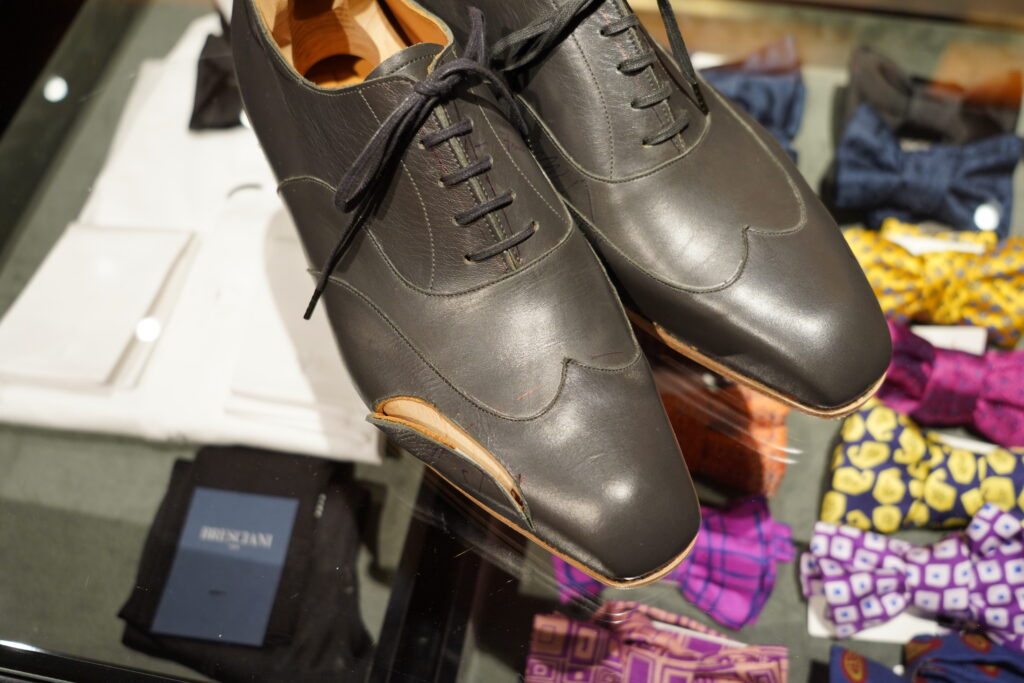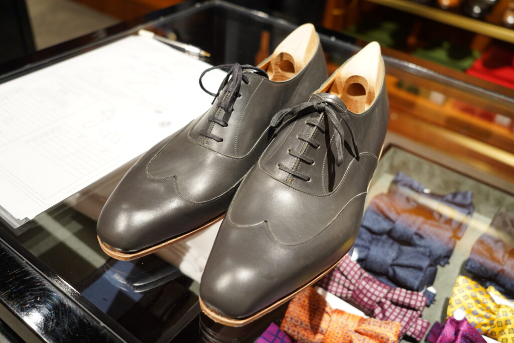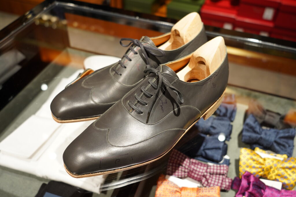 さて、今回は何をお願いしようとしていたのか。それはブラウンのフルブローグです。事前に拝見していたサンプルもとても美しく、鋭角なラインから構成されエッジが効いていて。私が今まであまり手にしてこなかったタイプの靴。