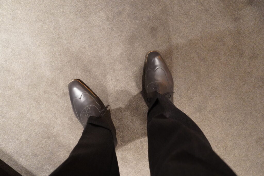 触診も無駄がなく、すっと気になるところを言ってもらえるのは安心の一言です。ビスポークは3足目から、とよく言われますが、1回目でもかなりいいものができるのでは…と期待は高まります。しかしトランクショーという楽しい時間はいつもあっという間ですね。そう言った時間があるのは本当にありがたいことだなと思います。