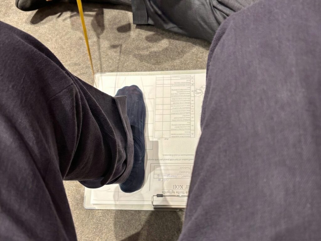 そうして足の計測。流れるような所作で足の特徴を捉えてくださいました。特にこちらが伝えずともこのあたりは気をつけたほうがいいですね、といった会話をしていただきとても安心。