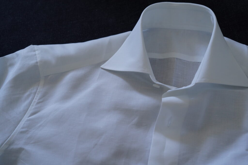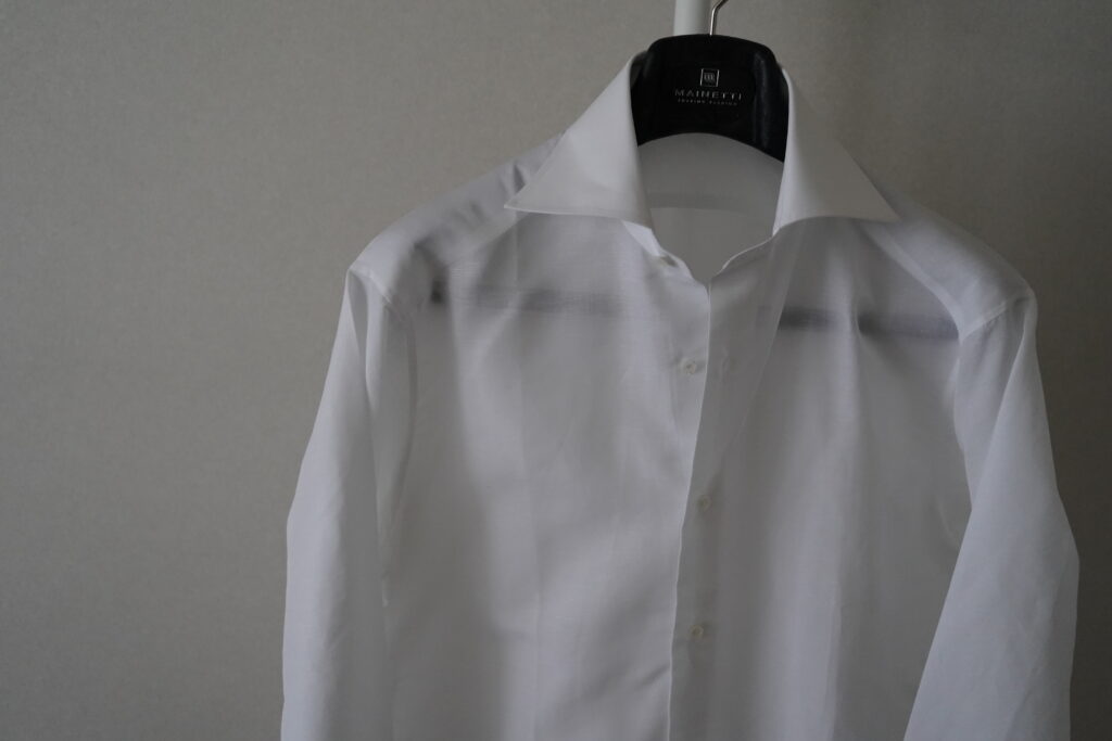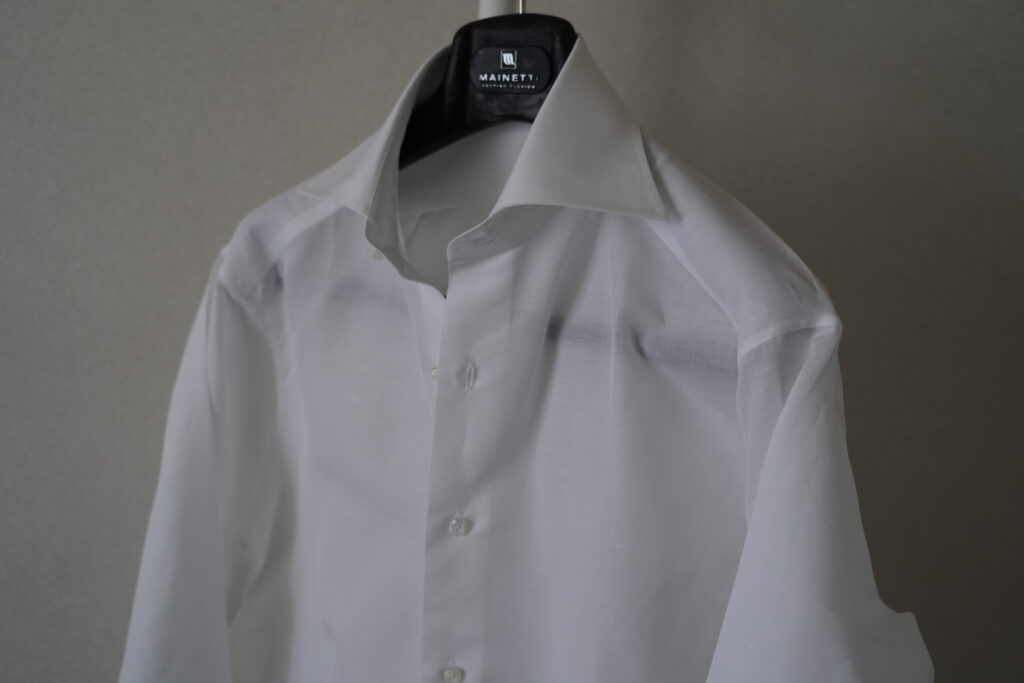 DJAのコットンリネンは久木元さんからおすすめいただいていて(おすすめいただいていたのに作ったのは随分後)、作ってもらったら非常に良かったので、どんなスーツ、ジャケットにも合う白のコットンリネンでもう1着お願いしました。