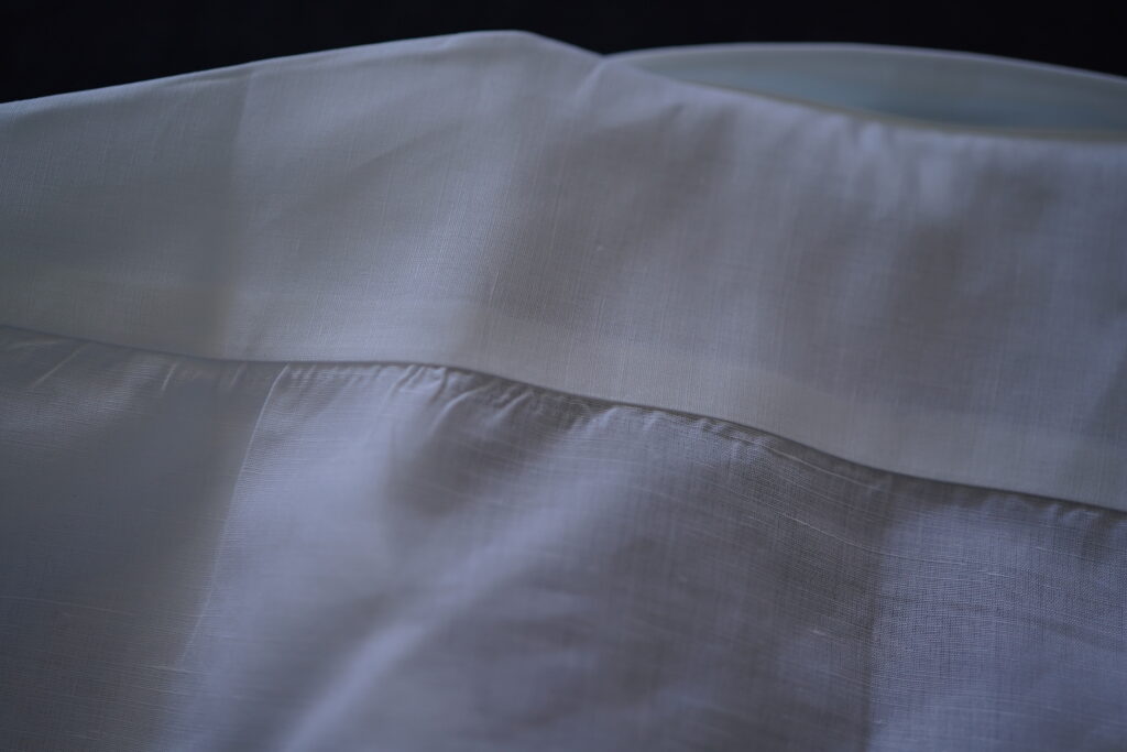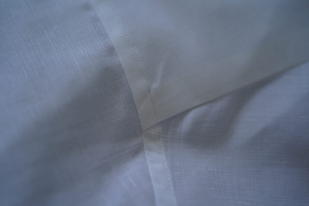 DJAのコットンリネンは、同社のコットンと比較すれば多少ざらっとした肌触りはありますが、不快感は全くなくそれでいて肌離れも良い。柔らかすぎずハリとコシがあり、控えめな光沢感にリネンでーす!と主張する感じもない。非常にバランスの取れた生地だと思います。