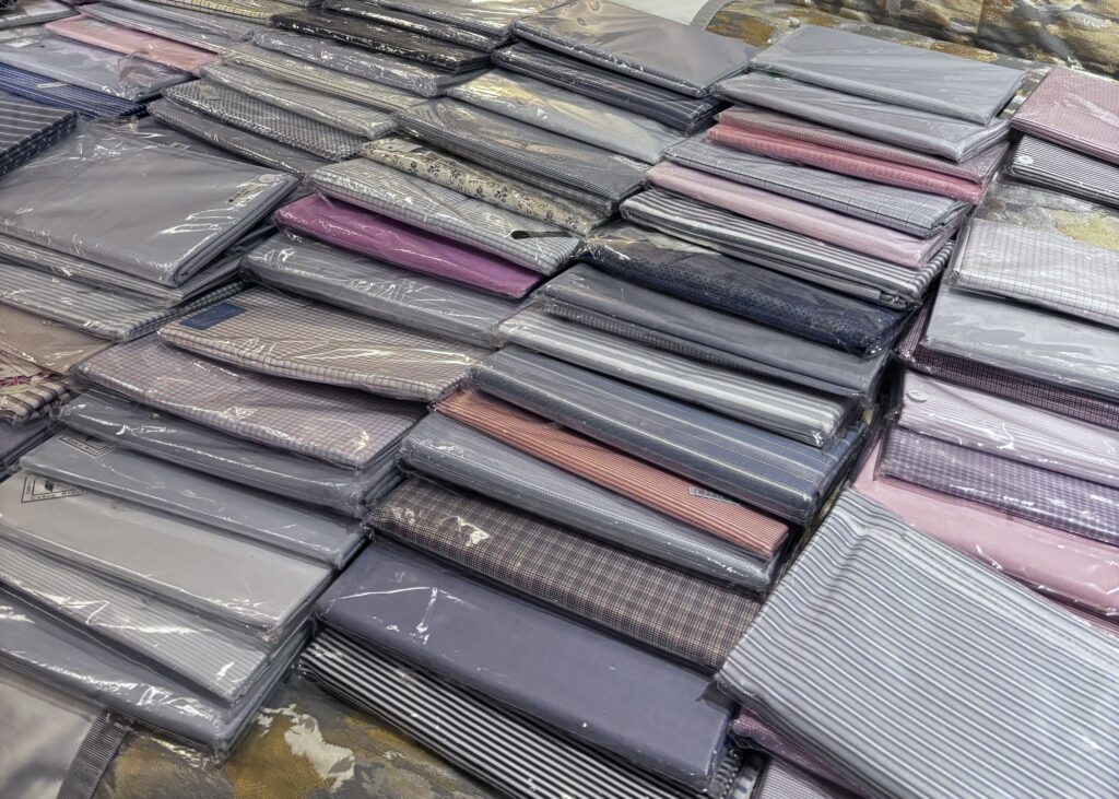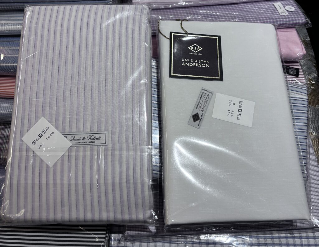 この時は時間ギリギリまで使ってすごく悩んだ記憶があり、右往左往しながらレスレストンのストックからグランディルビネッリのリネンと今回ご紹介するDJAのコットンリネンを選びました。